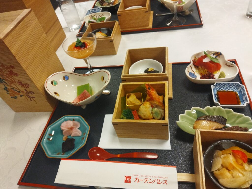 投扇興の箱に入ったミニ懐石ランチ