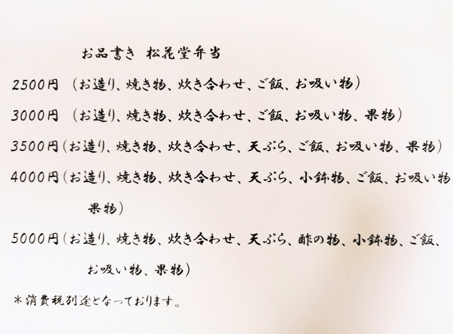 かき豊さん仕出しメニュー