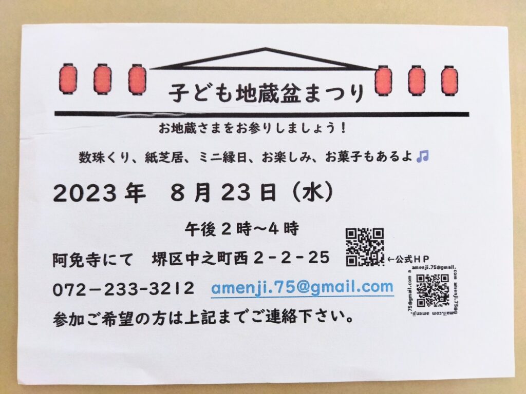 また今月23日(水)には地蔵盆を開催します。