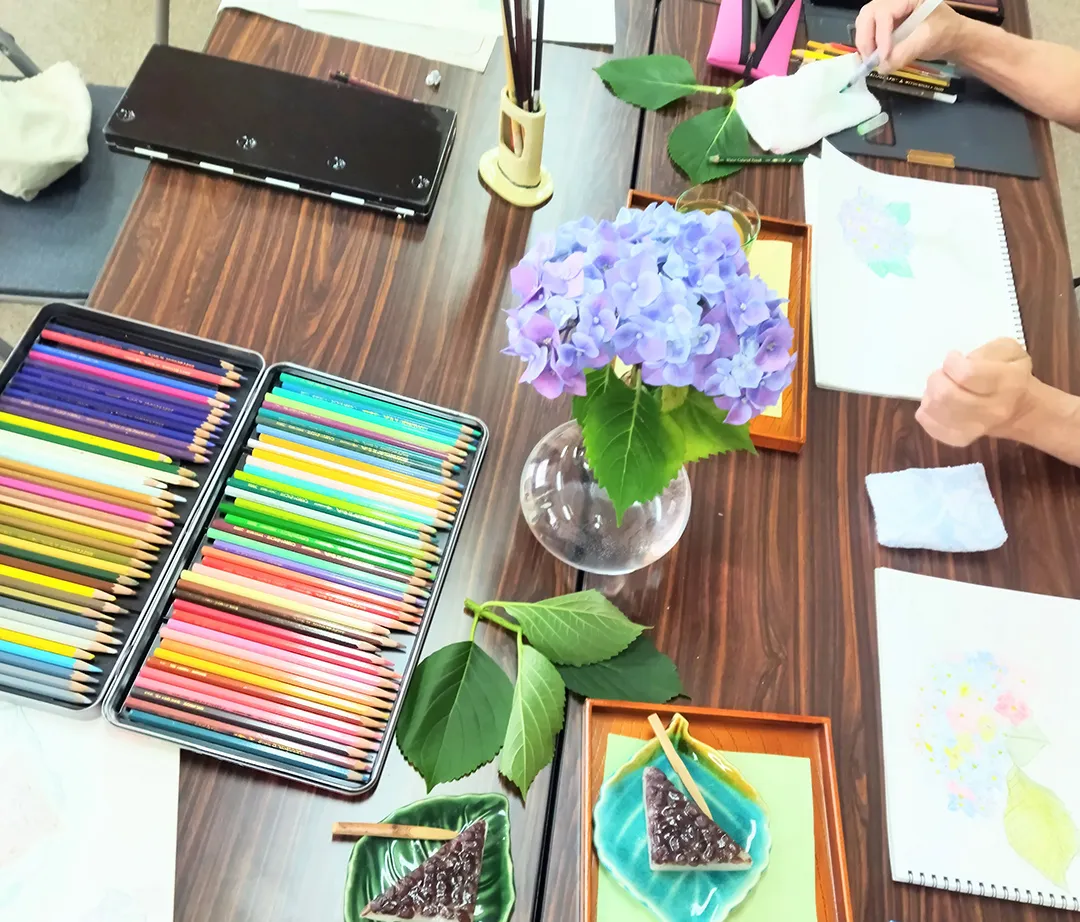 季節の旬なモチーフを選び、水彩絵の具を中心に、色鉛筆画なども使い、スケッチを大切にしながら楽しく描いていただています。また描きたいものがあれば、写真や絵画の模写なども可能です。描きたい気持ちを大切に気軽にご参加下さい。